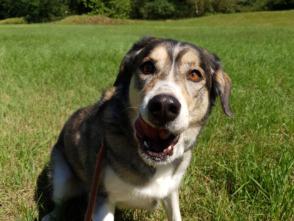 Sky est un chien adorable , il aime jouer et connaît quelques ordres d'éducation de base (assis, couché, donne la patte).